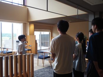 実際にホテルを見学しながら、わんちゃん連れのお客様に喜んでいただけるプランを考えていただきました。